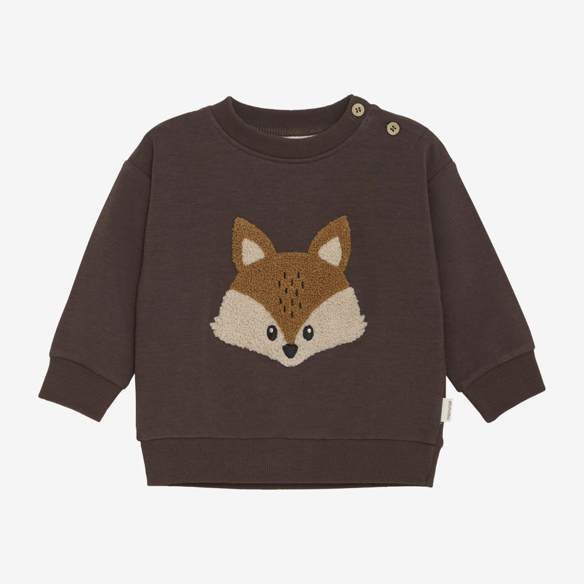 Long-sleeve sweatshirt with a cute fox motif on the front. The sweatshirt features wide ribbed cuffs at the sleeves and hem, as well as shoulder buttons for easy dressing. It is made from a soft and comfortable fabric.