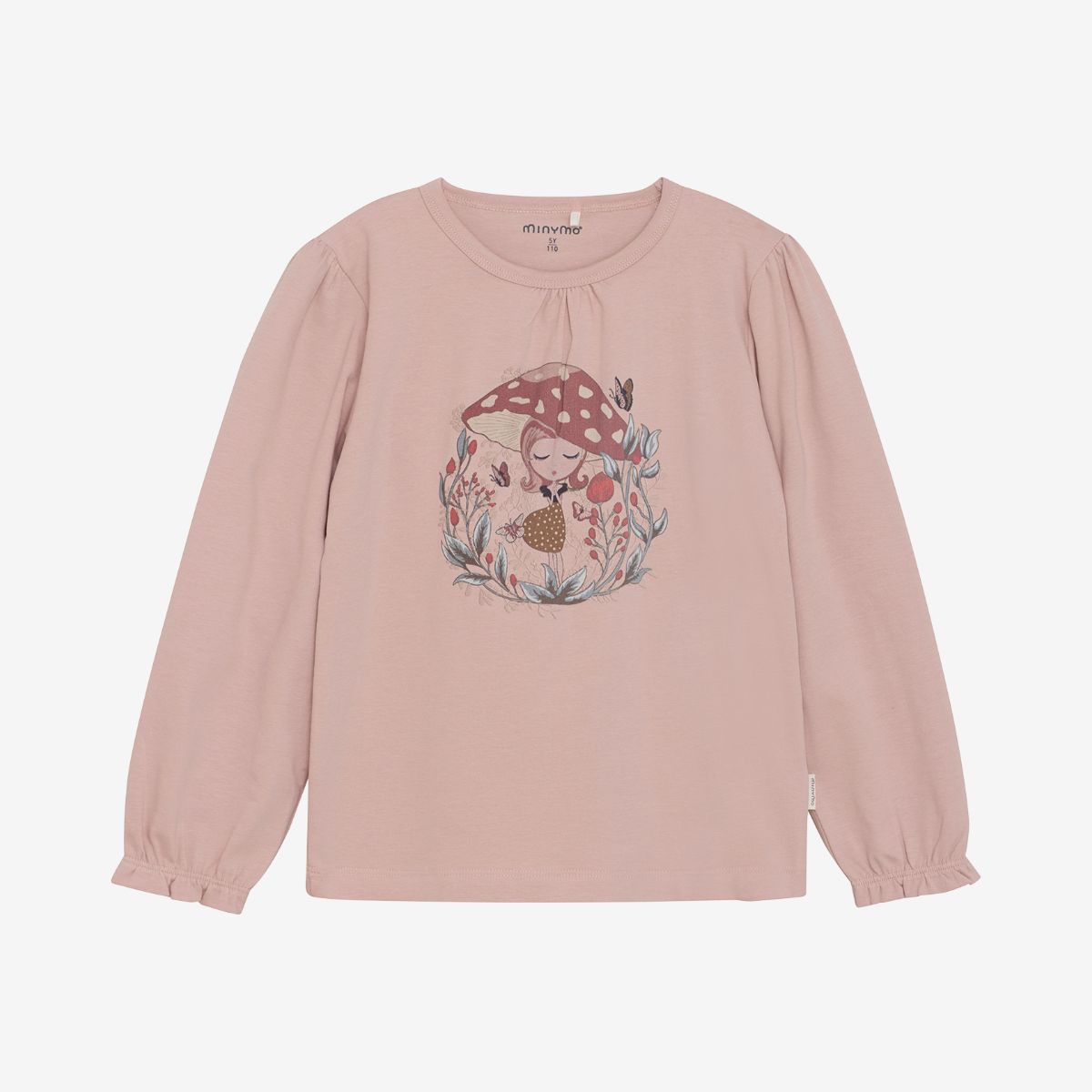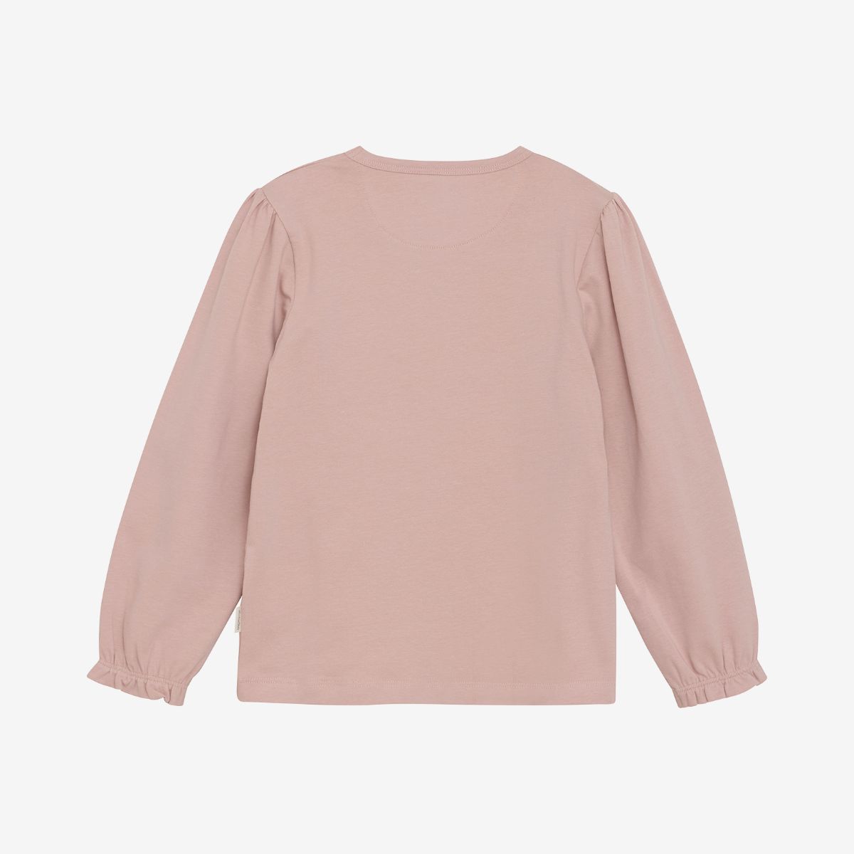 Long-sleeve T-shirt with a cute front print and puff sleeves featuring elastic and frill details at the cuffs, for a sweet and stylish look.