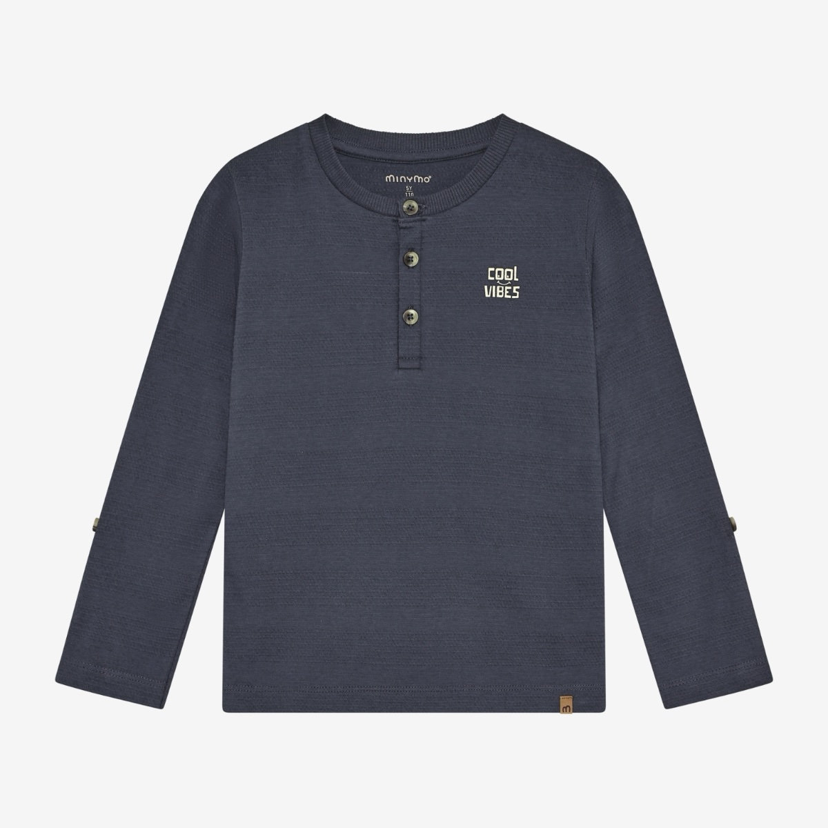 Long-sleeved T-shirt from Minymo in solid-colored 100% cotton. The shirt features a chest print and closes with buttons. The sleeves can be rolled up as needed.