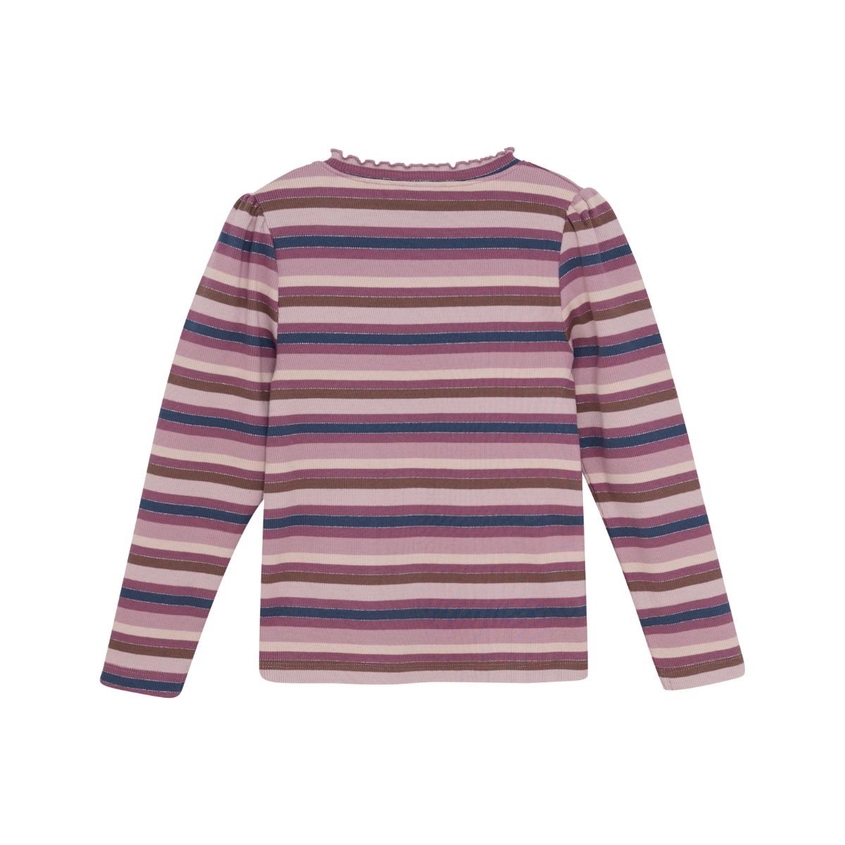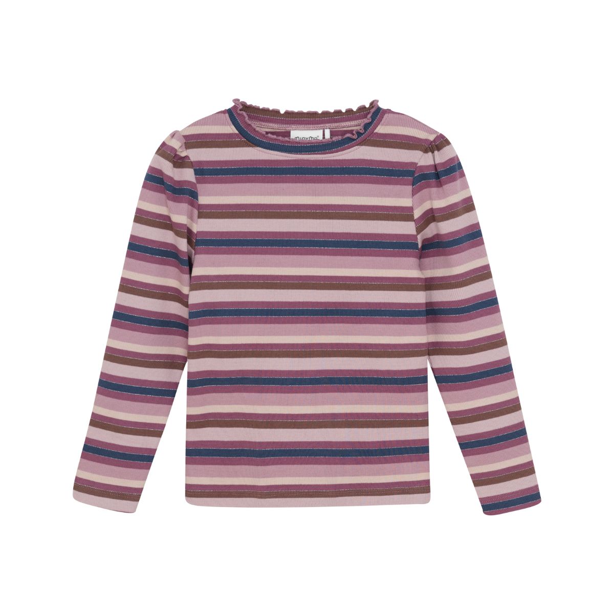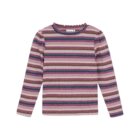 Simple and cute long-sleeved t-shirt from Minymo. The t-shirt has a sweet striped pattern with glitter details. It features small pleats at the shoulders and collar, adding an elegant touch to an otherwise simple everyday top. The t-shirt is made from an organic cotton blend, which feels soft and comfortable against the skin.