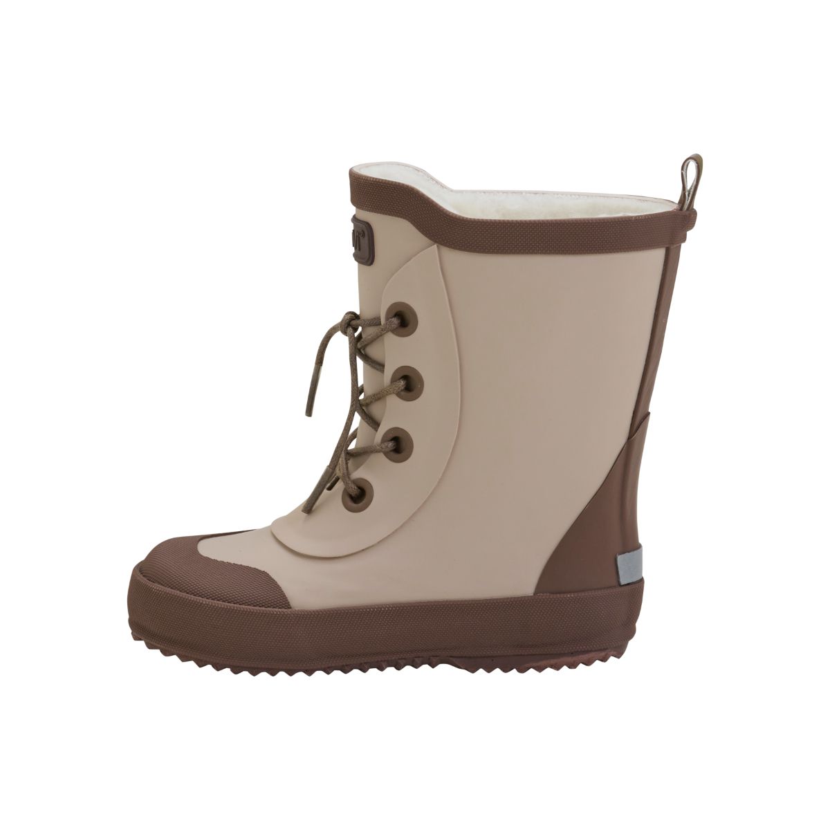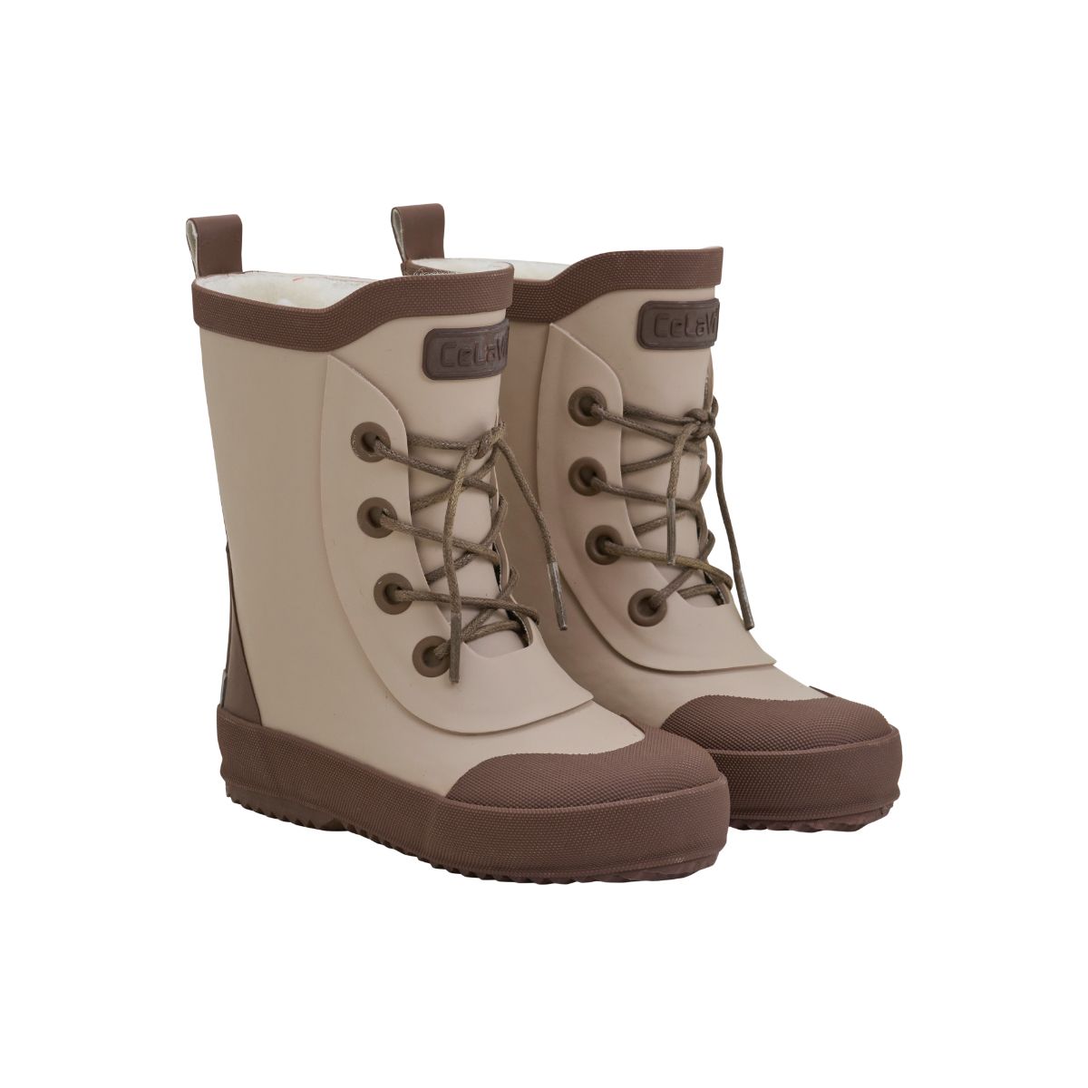 Cool rainboots from CeLaVi. The boots are made of 100% waterproof natural rubber and have warm wool lining on the inside. The boots have a cute detail at the front. Reflective details around the boot and CeLaVi logo. A 1 cm allowance for growth is recommended.