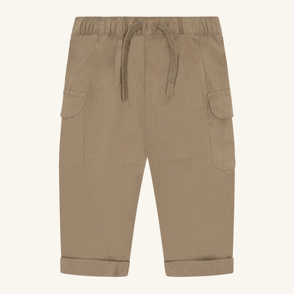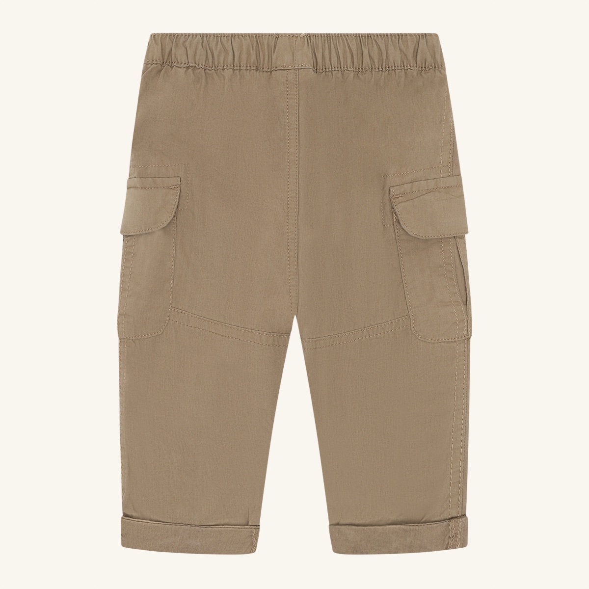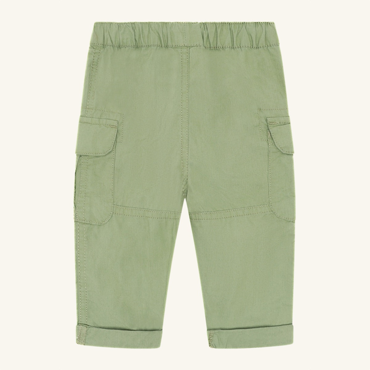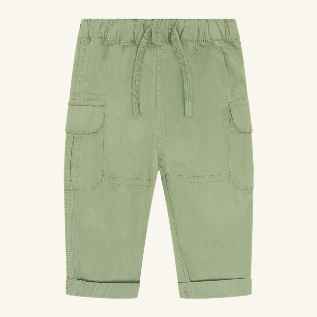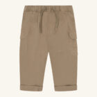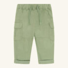 Baggy trousers with an elasticated drawstring waist. These trousers feature patch pockets on the sides, darts at the knees and elasticated cuffs. Adjustable waist.