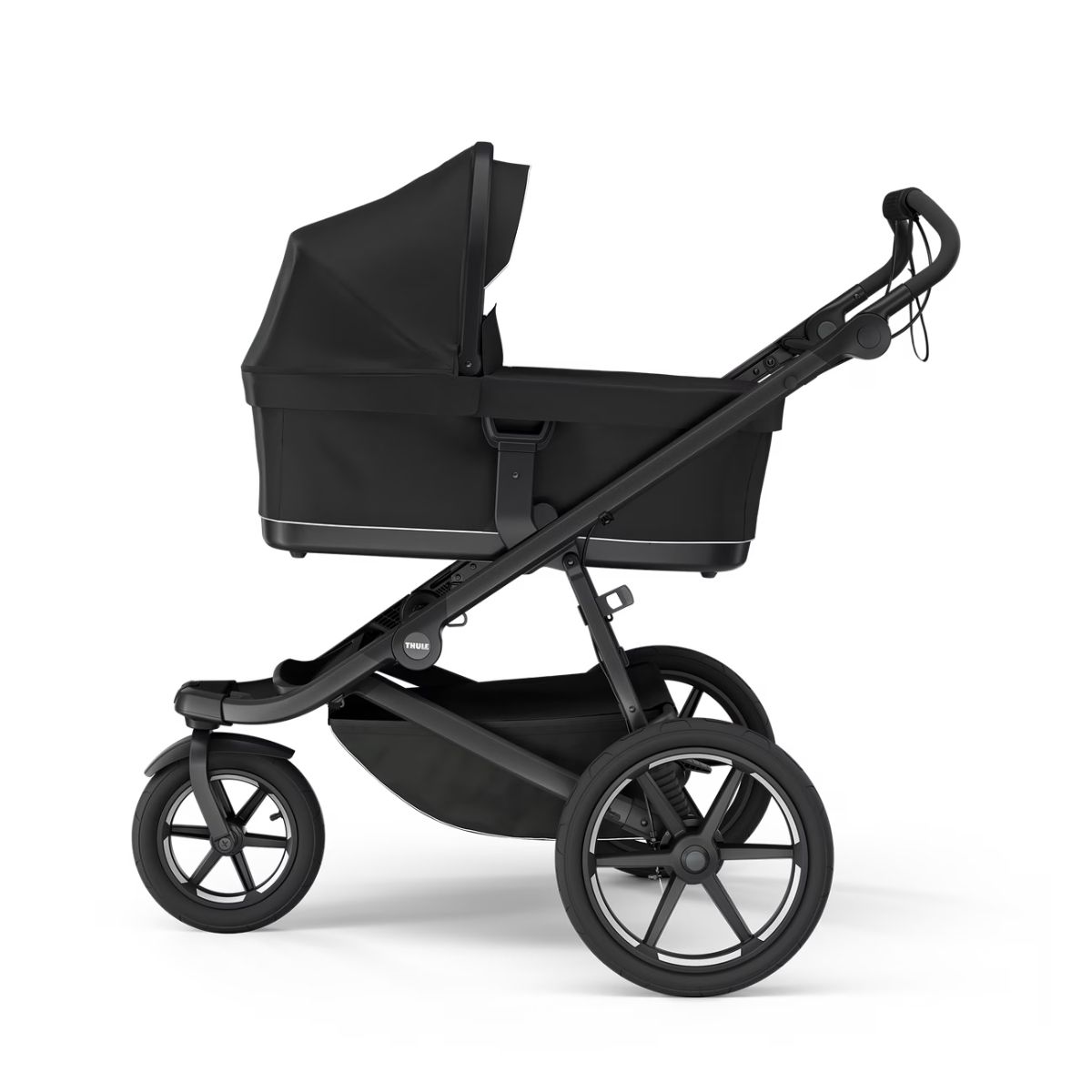 Designed for active parents, Thule Urban Glide 3 offers a combination of comfort, functionality, and performance on any surface. Experience unmatched maneuverability with its sleek and lightweight design, and large 16″ air-filled tires for superior suspension. Whether you’re strolling through the city or conquering rough terrains, this stroller delivers a smooth and comfortable ride. The swivel front wheel effortlessly maneuvers through crowded streets and is easily locked in place when you are gearing up to a higher pace. The twist hand brake provides optimal speed control for safety, whether on pavement or hilly terrain.