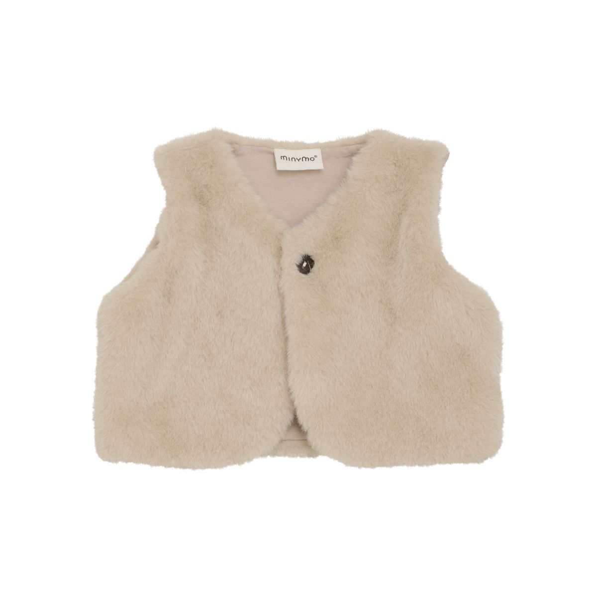 Stylish vest from Minymo. The vest has a cool faux fur look and is ideal for both dressy and casual occasions. It is made from 100% polyester, which makes it comfortable to wear. The vest features a decorative button, making it easy to put on and take off.