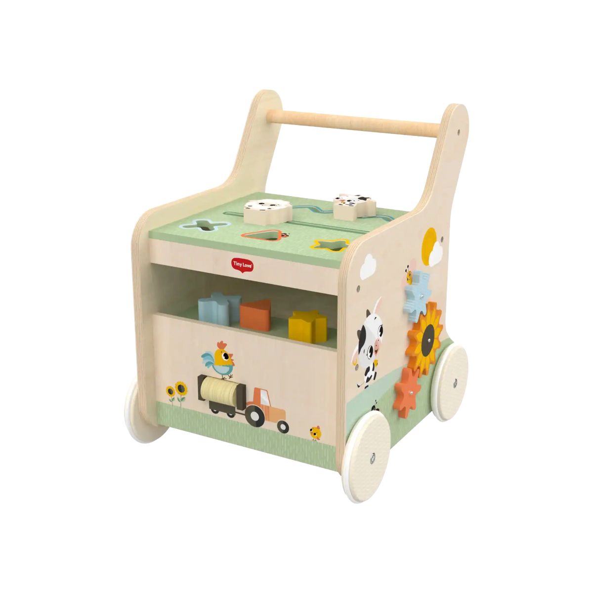 The stroller is designed to support gross motor skills by helping the child balance, take steps and develop confident movement skills. The tactile and problem-solving activities on the front simultaneously stimulate early cognitive development and invite the joy of discovery.