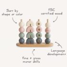 Discover the world of shapes with Mushie’s Wooden Multi Shape Stacker! Little ones will be introduced to the joy of learning through play with this timeless toy. With 20 wooden shapes, perfectly designed for tiny hands, this stacker opens a world of possibilities for teaching shapes, colors, and spatial reasoning. The interactive nature of this toy encourages concentration and problem-solving – building a strong foundation for future cognitive development. Made from FSC certified wood and adorned with non-toxic paint, the stacker toy ensures a safe and eco-friendly play experience.